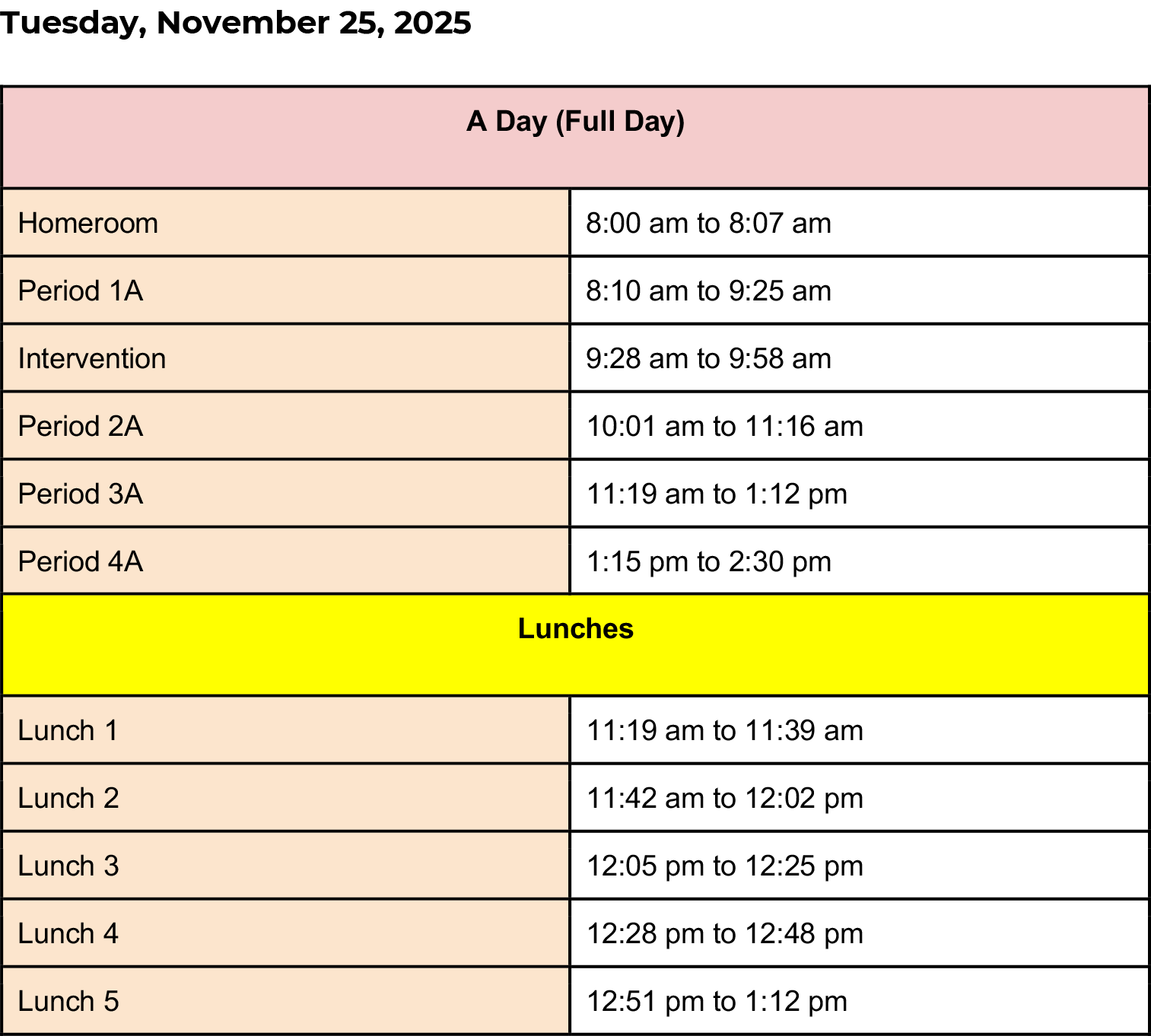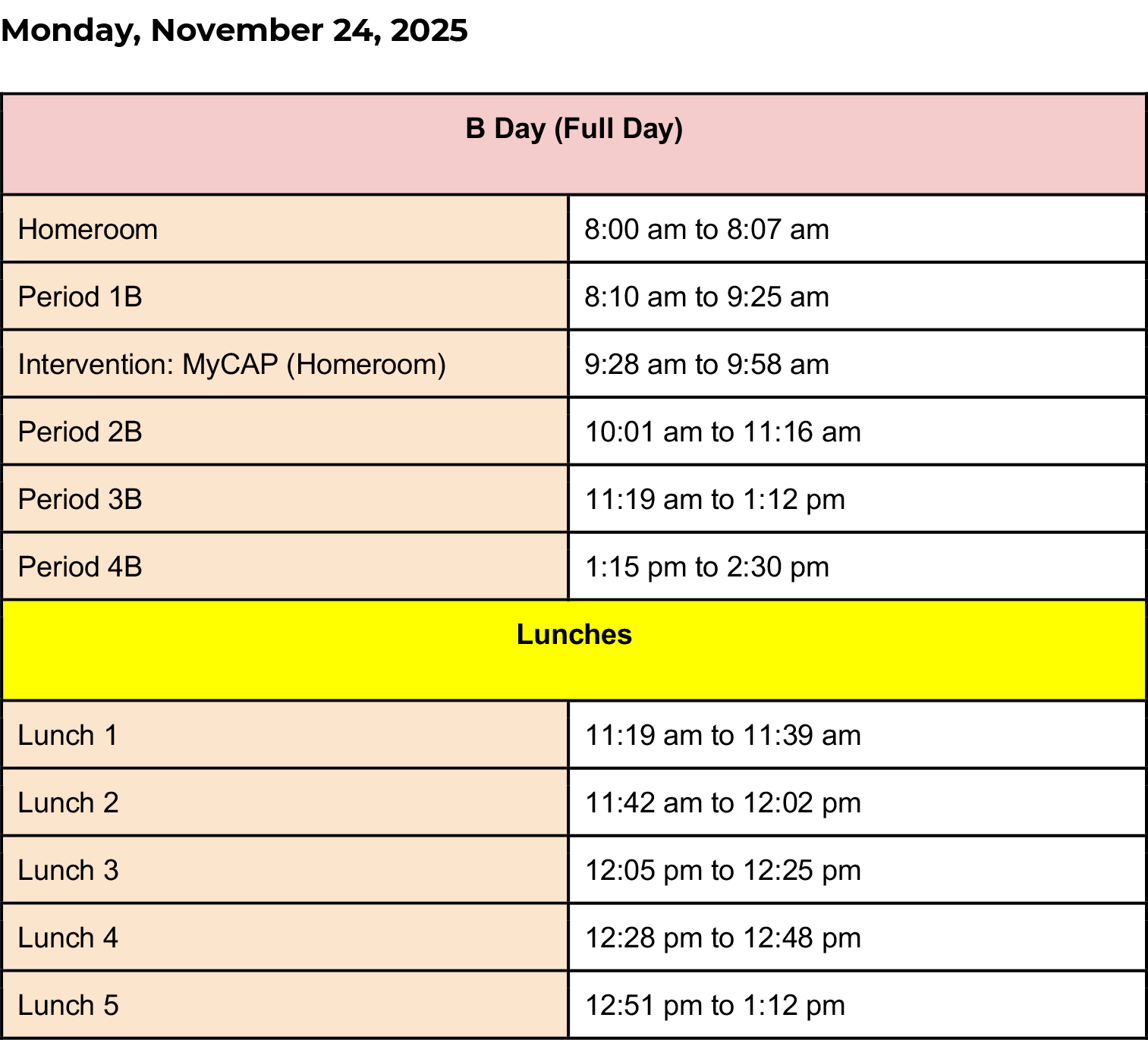 Wednesday, November 26, 2025, is a half-day of school. We will send out a schedule for the half-day on Monday.