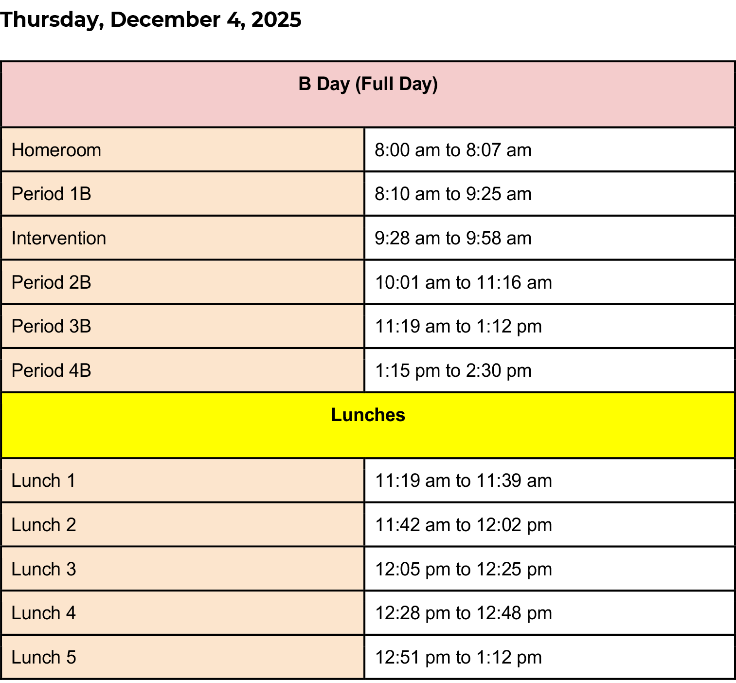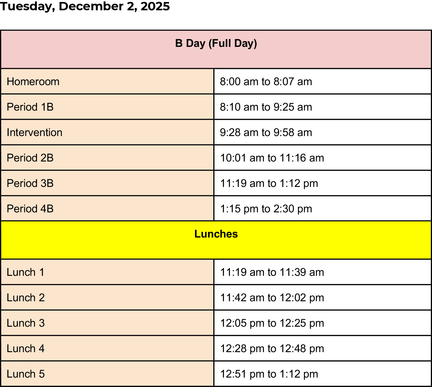 This Wednesday, December 3, 2025, is a late-entry day for Teacher Professional Development. The schedule for December 3, 2025, is below in this message.