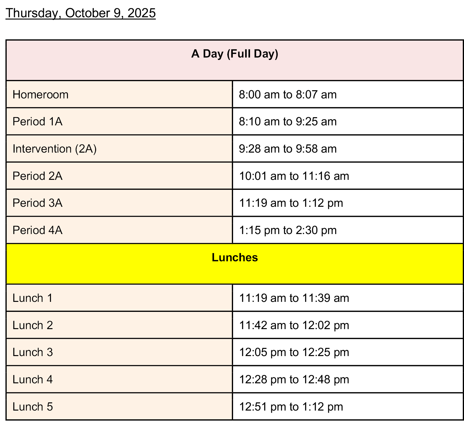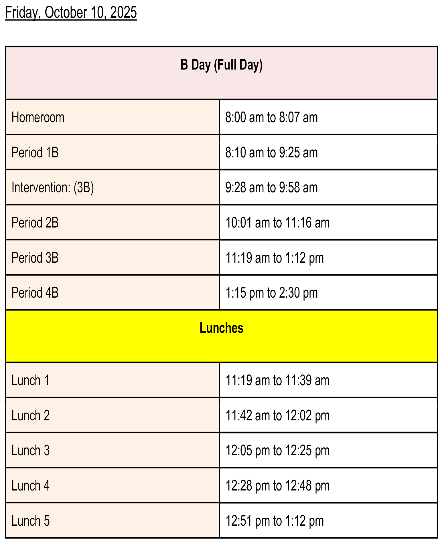 Friday, October 10, 2025: (B Day)