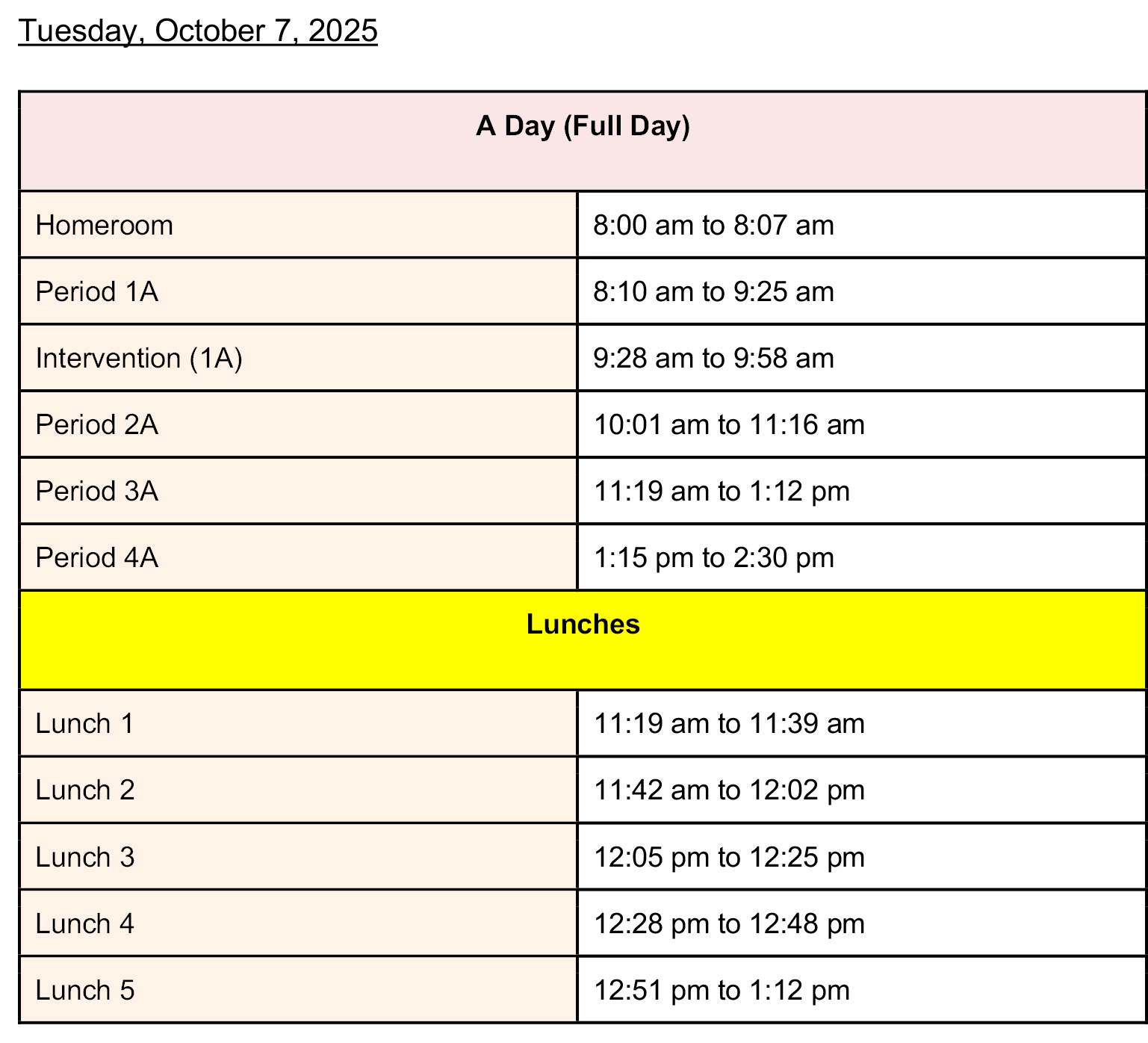 Tuesday, October 7, 2025 (A Day)